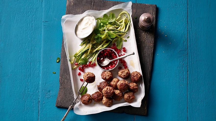 Scharfe Lammhackbällchen mit Zucchetti Salat