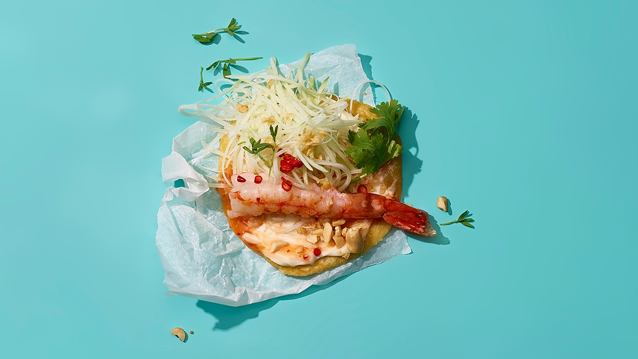 Taco mit Riesencrevetten und Papayasalat