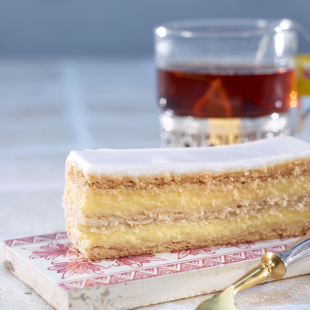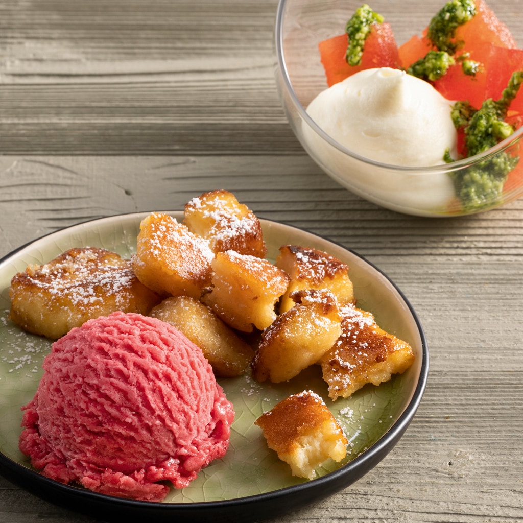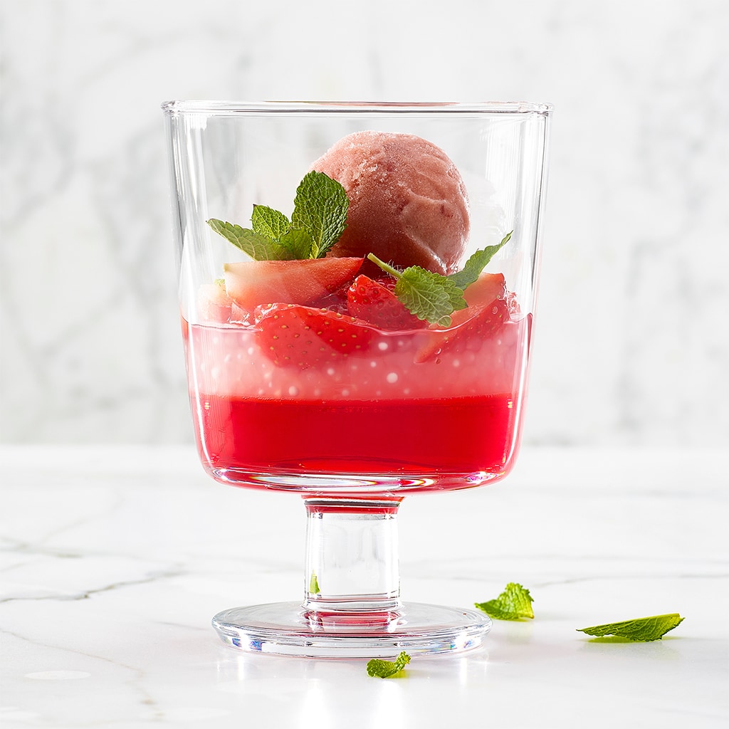 Gefrorener Kaffee und cremige Kirsche mit Biskuit und angeschlagenem Kirsch-Rahm