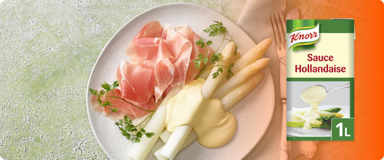 Alle Jahre wieder, ungefähr ab Mai, steigt die Nachfrage nach Spargel mit Sauce Hollandaise. Doch auch ausserhalb der Spargelsaison macht die Sauce Hollandaise von Knorr in Restaurant, Kantine und allen anderen Bereichen der Gastronomie eine gute Figur. Die Buttersauce ist besonders cremig, gelingsicher und immer bereit, wenn du sie brauchst.
