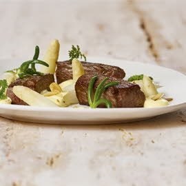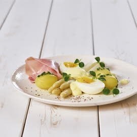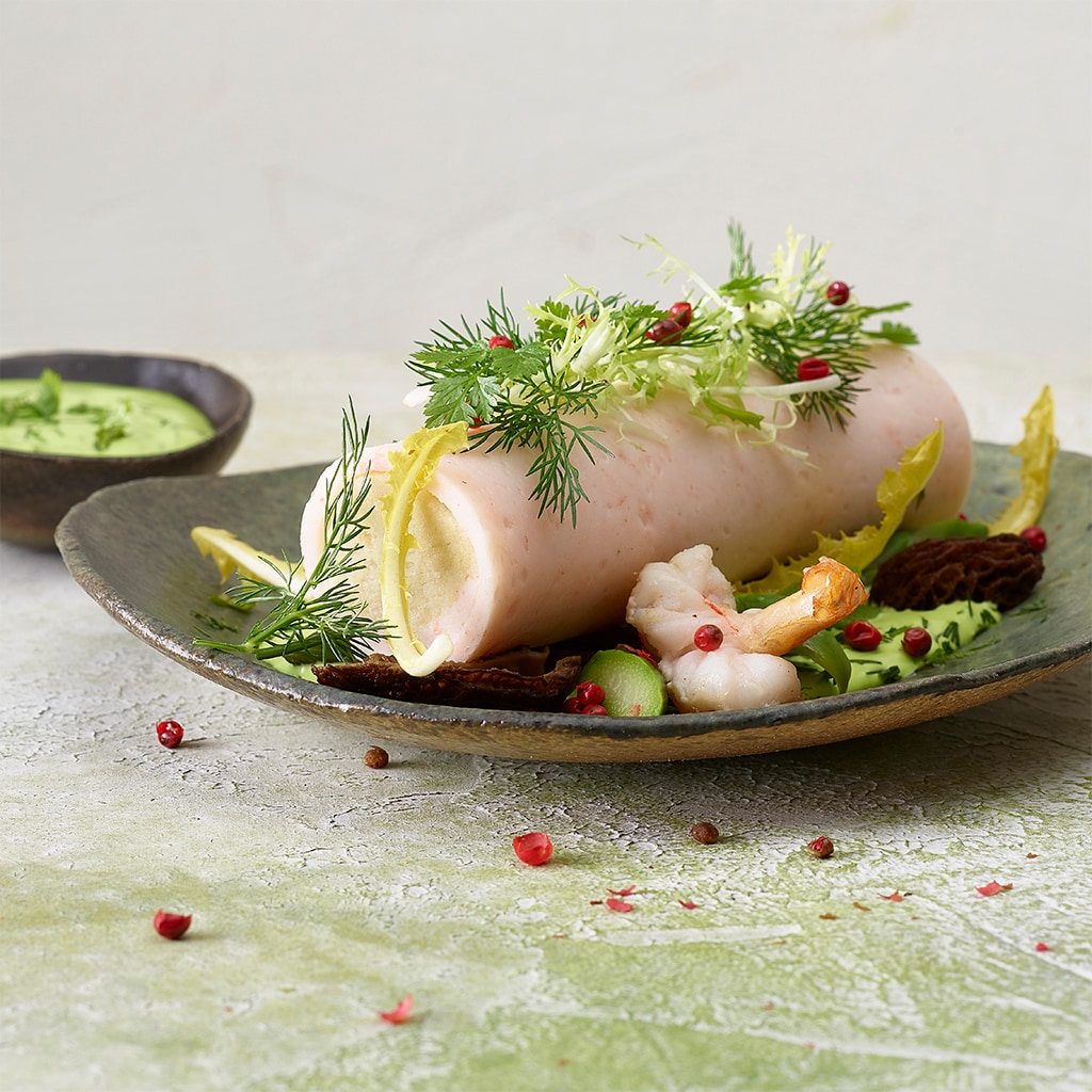 Demi coquelet avec une salade de ramen et une hollandaise mousseuse aigre-douce