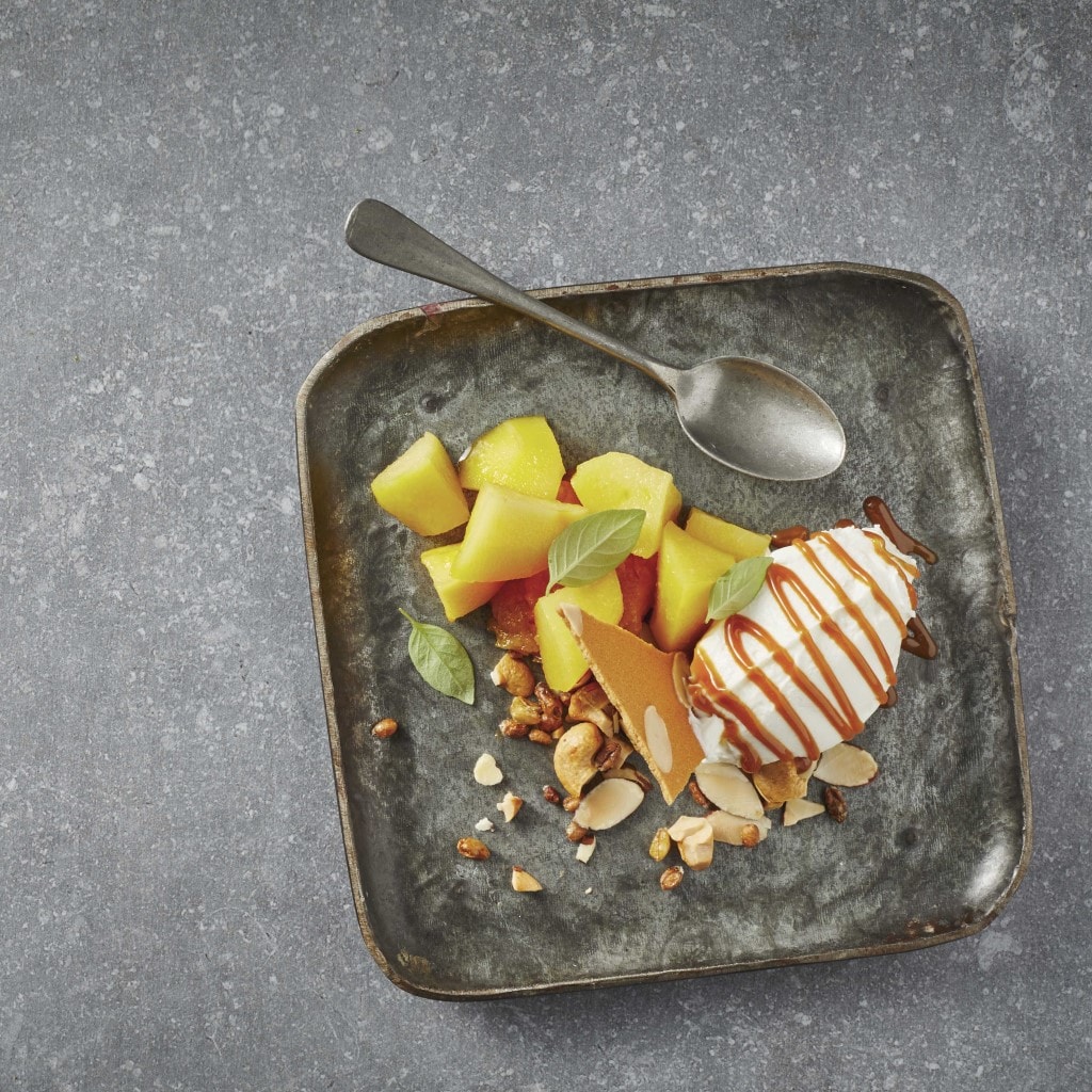 Gnocchi de tapioca, béchamel de tucupi et peau de banane caramélisée, fromage grillé brésilien
