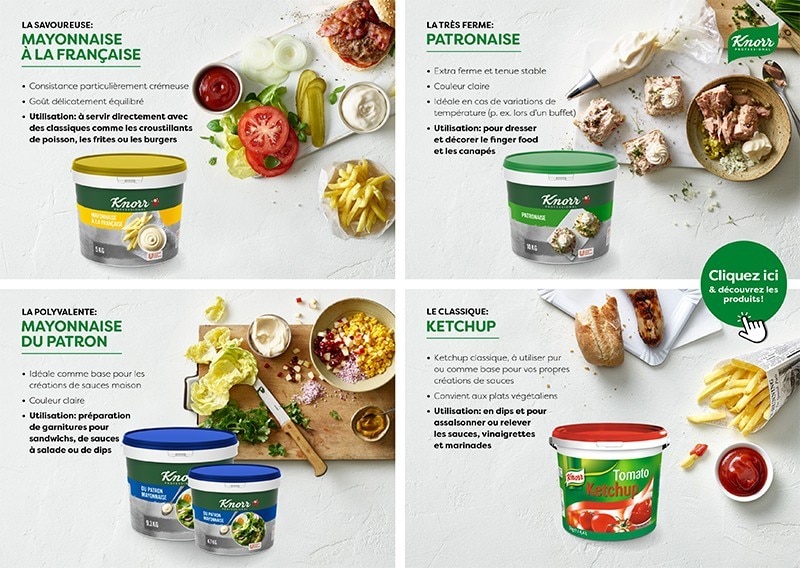 La mayonnaise parfaite unit les saveurs, apporte l’onctuosité nécessaire et donne à ton burger ce petit plus qui le rend vraiment spécial. Mais quelle mayonnaise est faite pour toi ? Découvre la diversité de nos sauces froides – sans elles, un burger ne serait qu’un steak sec dans un petit pain.